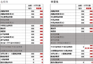 | 成績証明書 | 200円 |